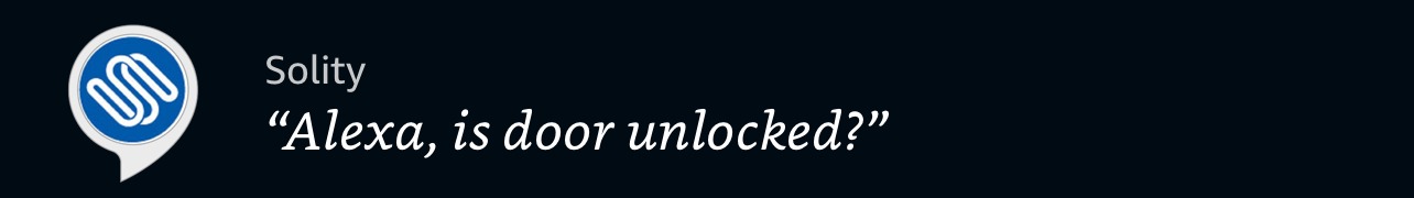 - Select Solity “Alexa, is door unlocked”