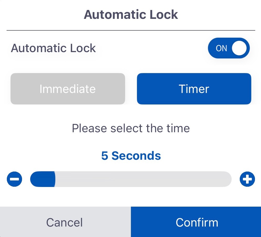 - To set your lock to a certain time click “Timer” then select the time using the “+” sign
